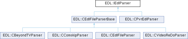 Implemented in EDL::CBeyondTVParser, EDL::CComskipParser, EDL::CEdlFileParser, EDL::CPvrEdlParser, and EDL::CVideoReDoParser.